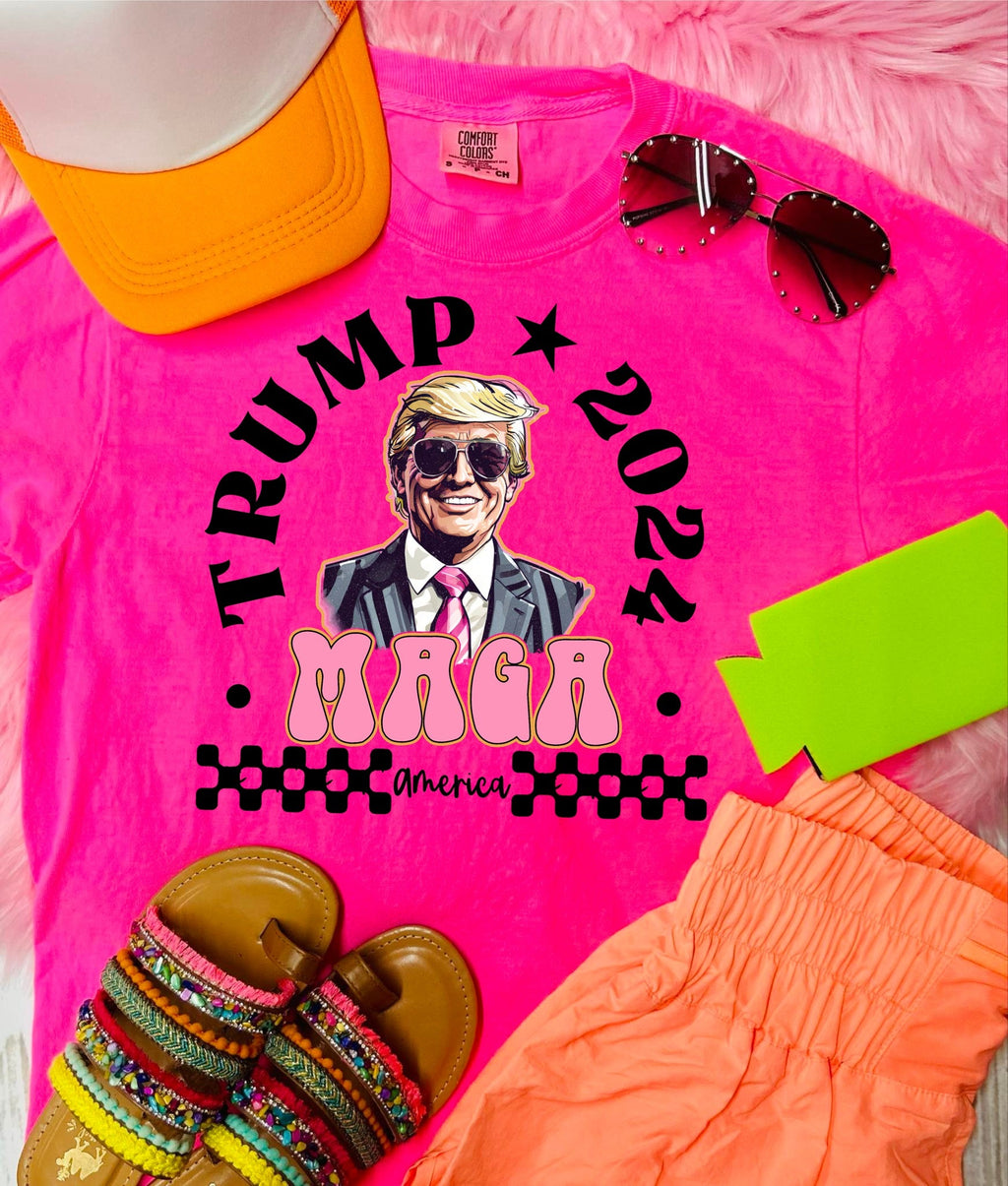 *DTF* 2024 Maga Checkered Neon Pink Comfort Color