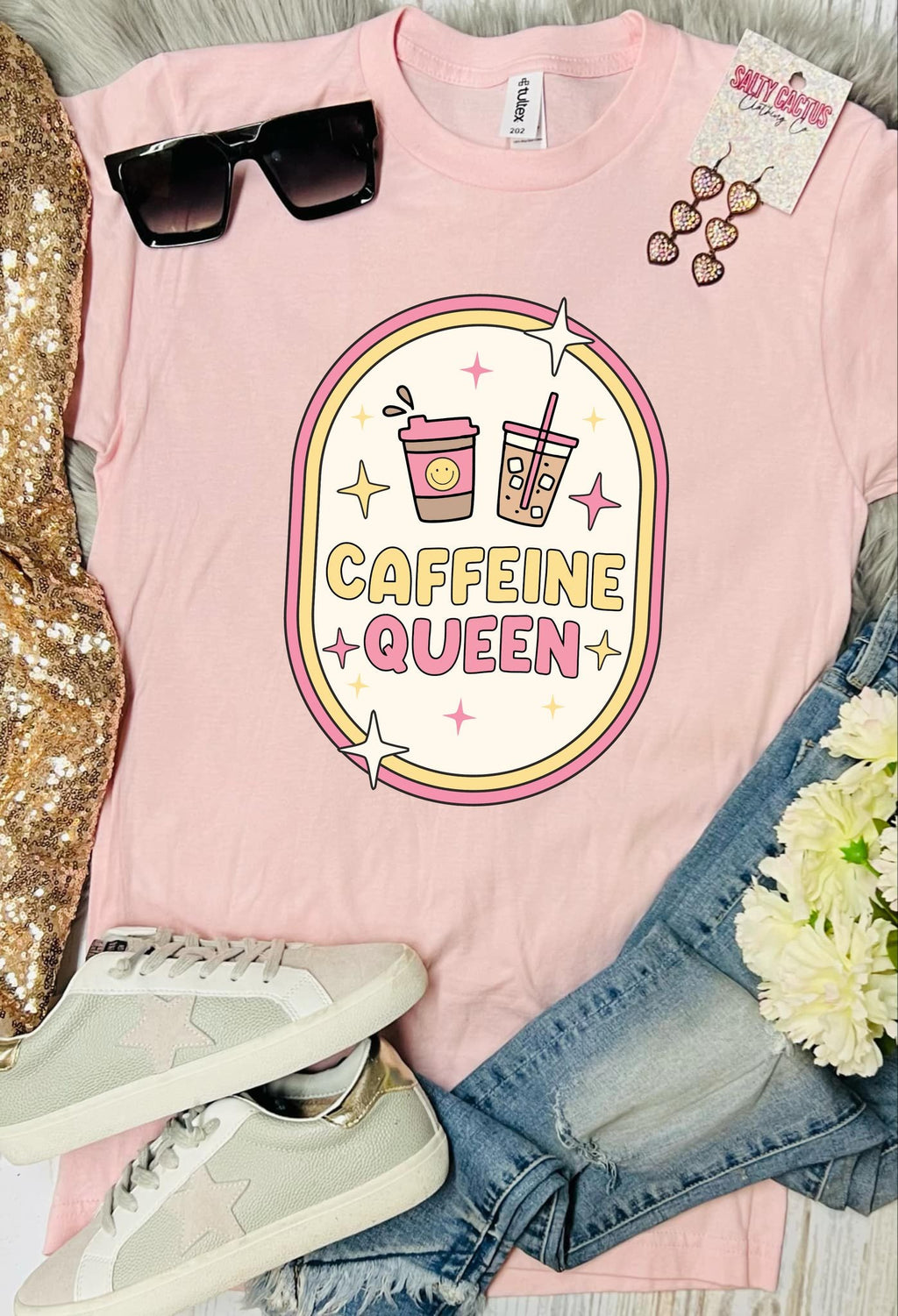 *DTF* Caffeine Queen Stars Baby Pink Tee
