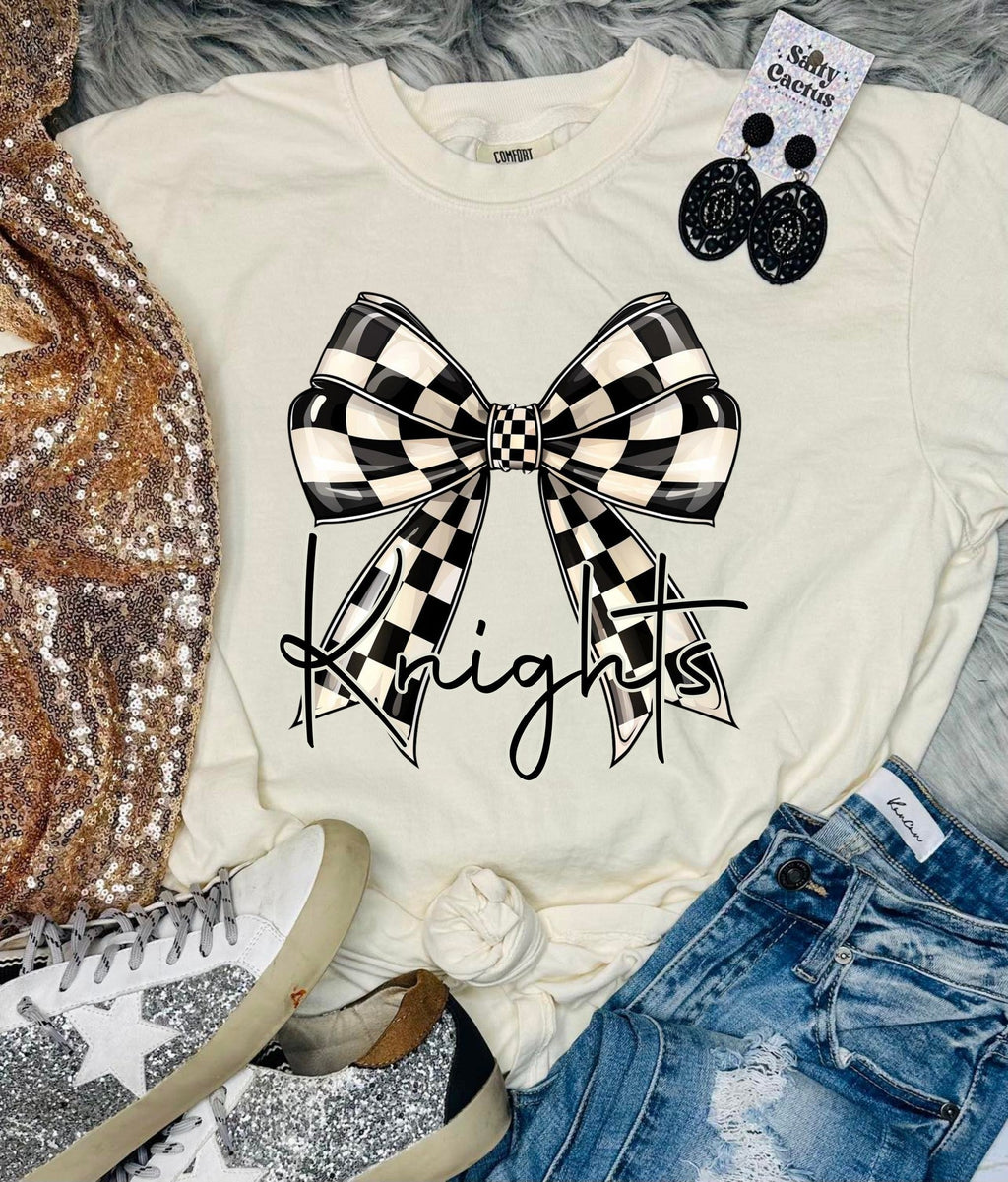 *DTF* Checkered Bow Ribbon Custom Spirit Ivory Comfort Color Tee