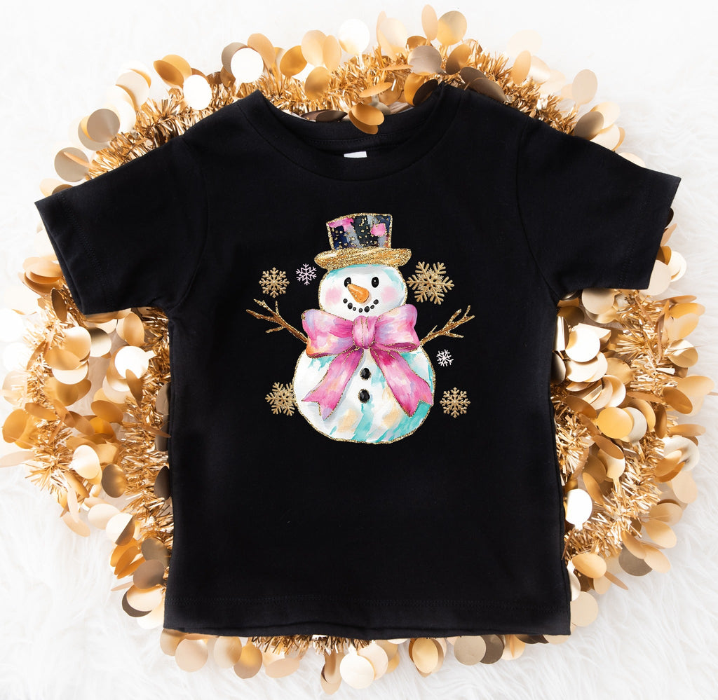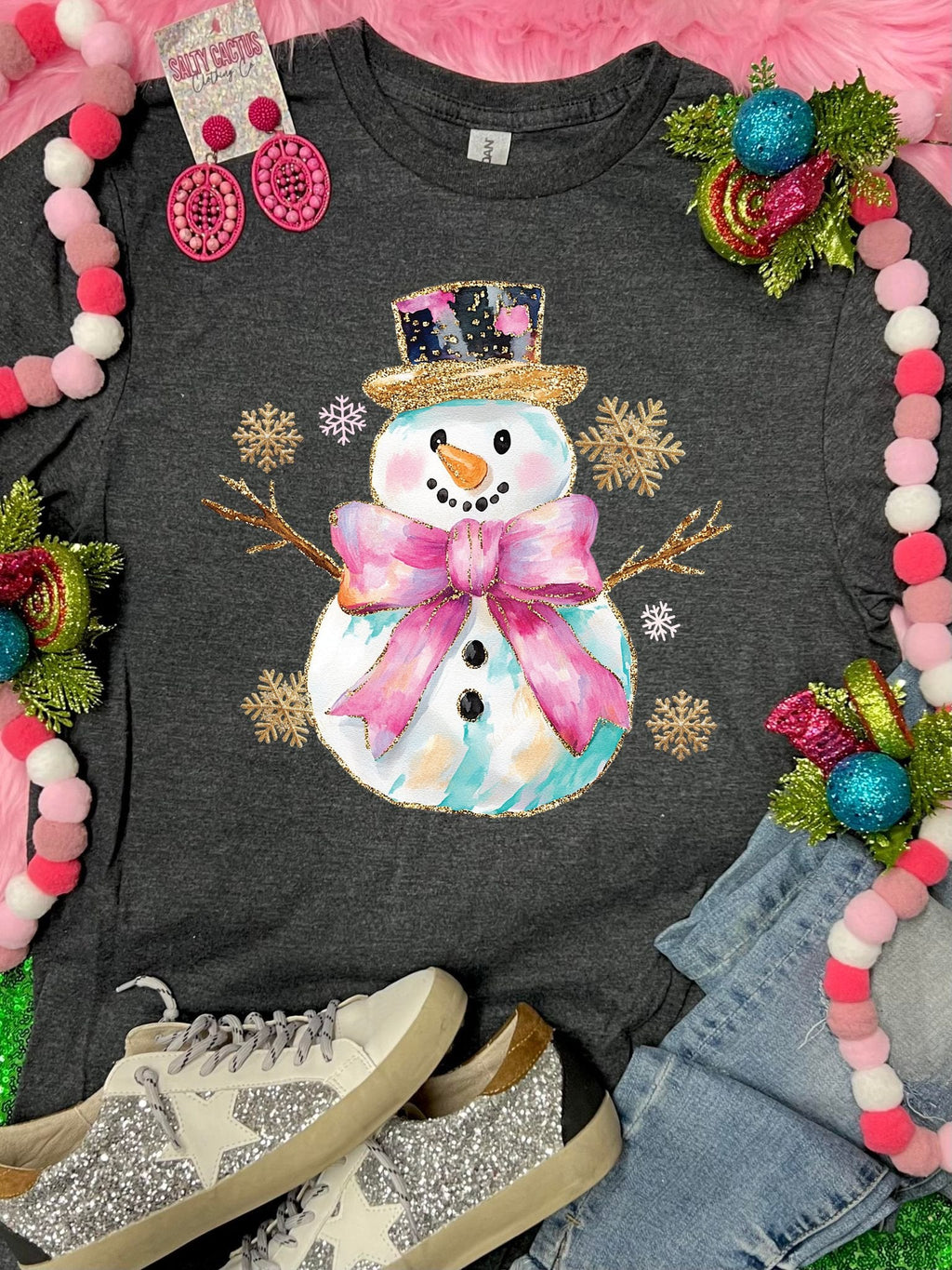 *DTF* Christmas Colorful Snowman Dark Grey Tee