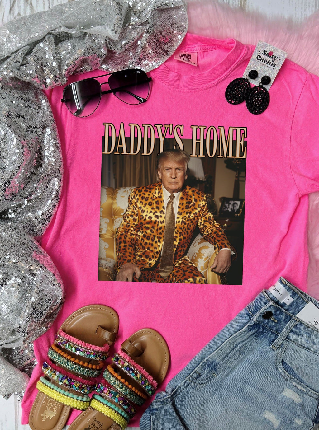 *DTF* Daddys Home Neon Pink Comfort Color Tee