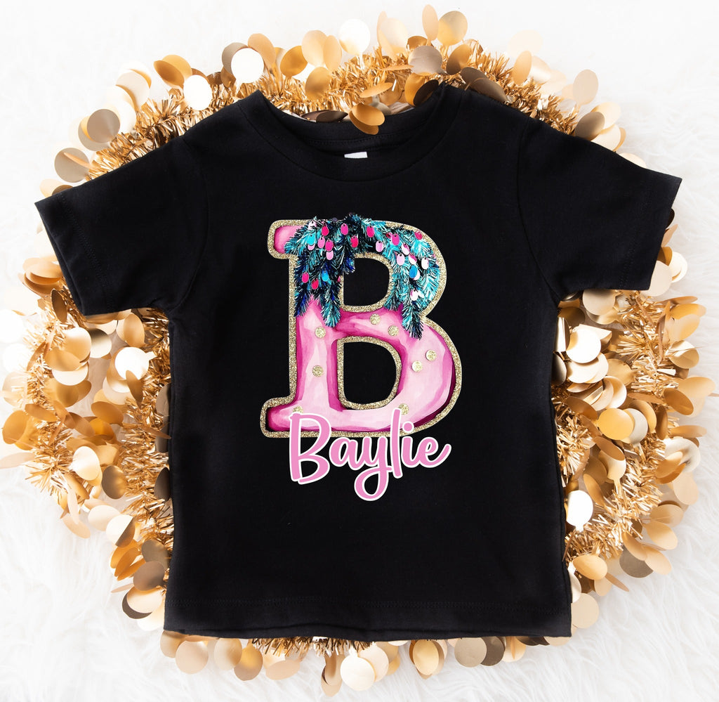 *DTF* Glitter Letter Mascot Sport Grey Tee