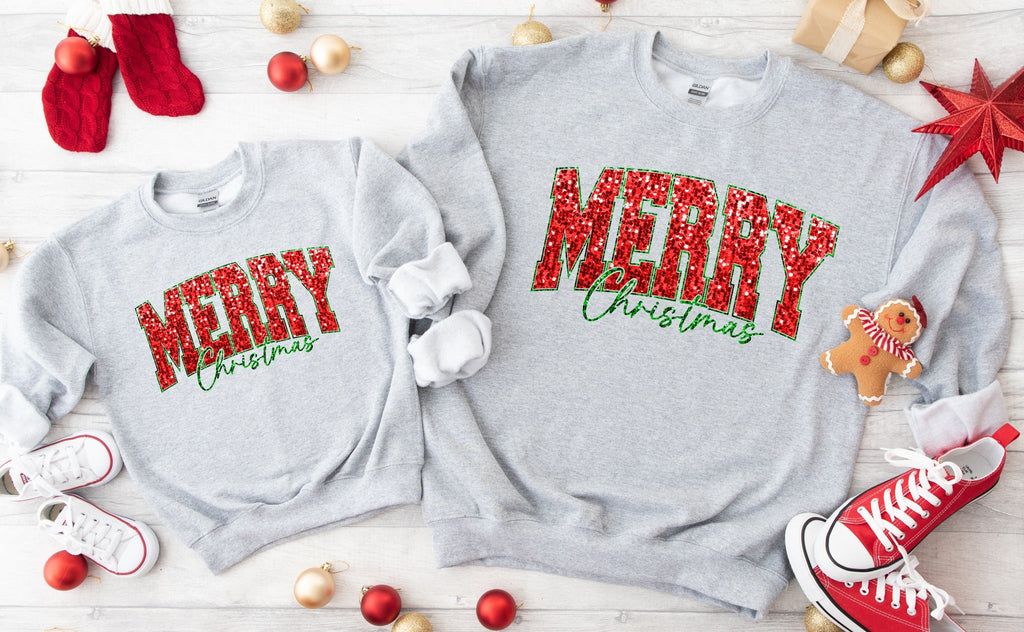 *DTF* Glittery Merry Christmas Sport Grey Sweatshirt