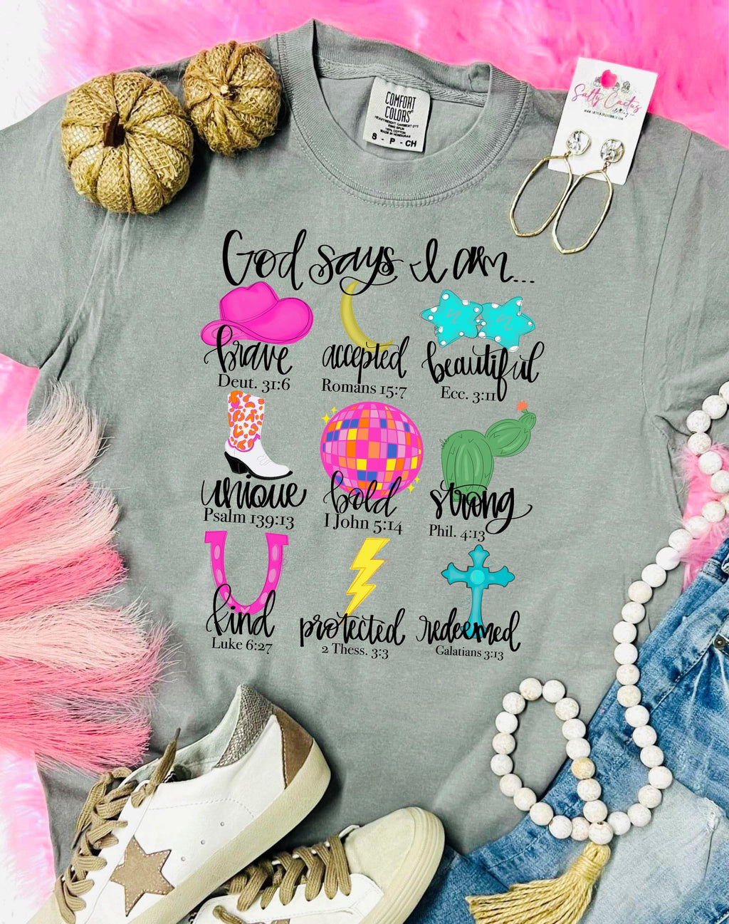 *DTF* God Says I Am Rose and Diamond Seafoam Comfort Color