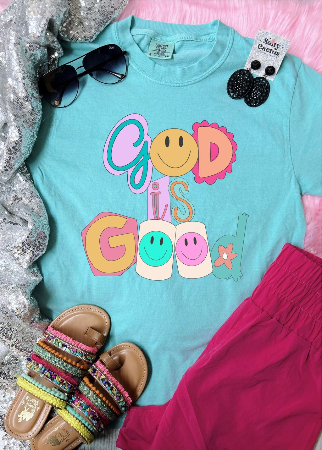 *DTF* God is Good Patch Retro Chalky Mint Comfort Color Tee