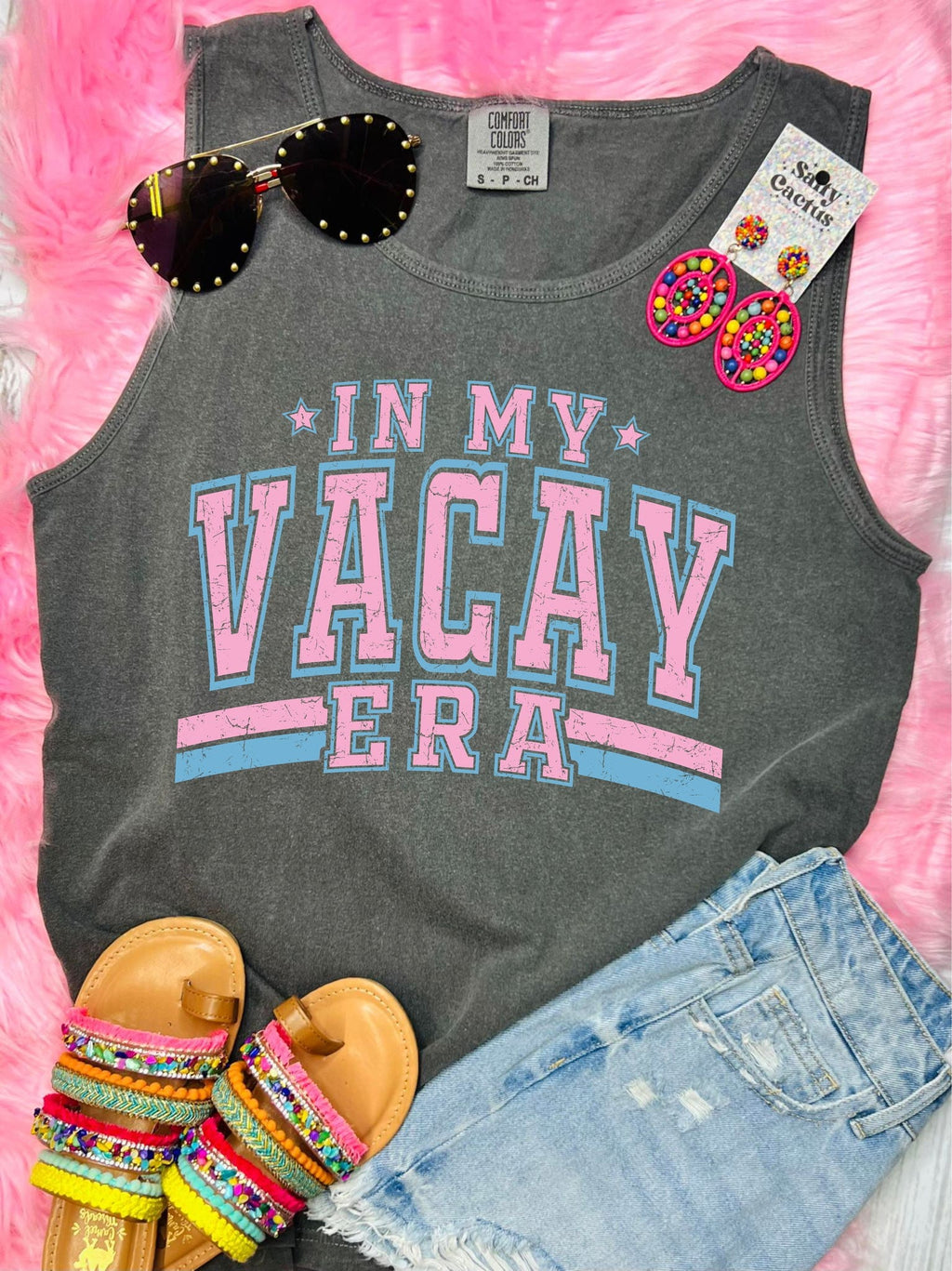 *DTF* In My Vacay Era Pink and Blue Pepper Comfort Color Tank