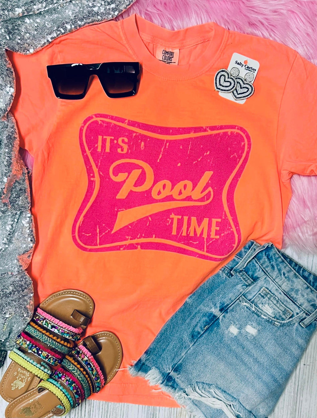 *DTF* It's Pool Time Bright Salmon Comfort Color