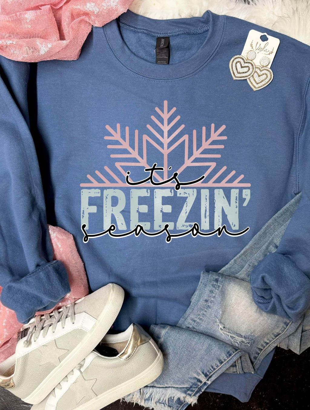 *DTF* It's Freezin Season Indigo Blue Sweatshirt