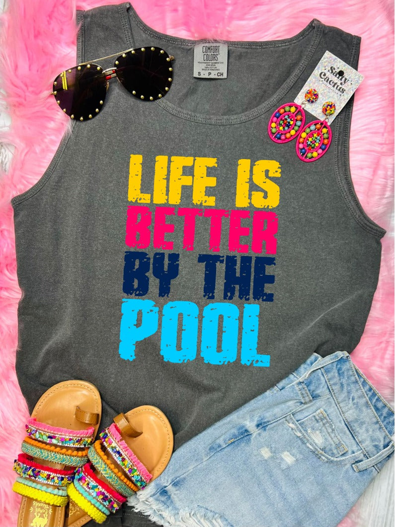 *DTF* Life is Better By The Pool Pepper Comfort Color Tank