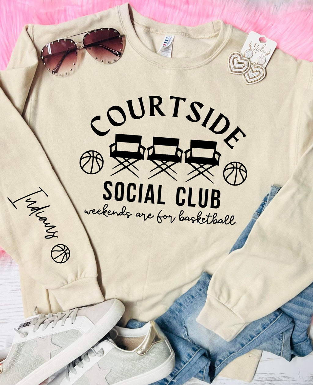 *Customizable* Court Side Social Club Basketball Tan Sweatshirt