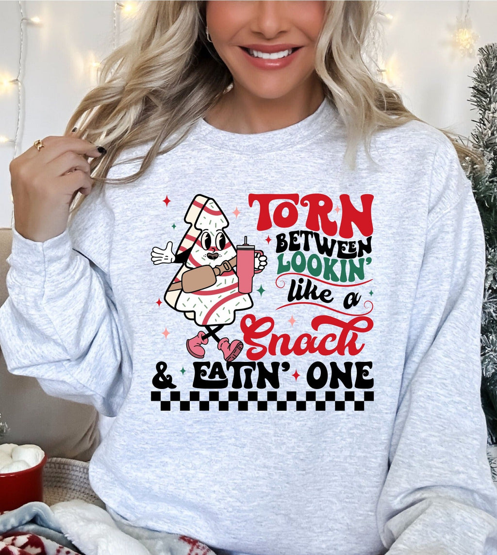 Torn Between Lookin Like A Snack and Eatin One Ash Grey Sweatshirt