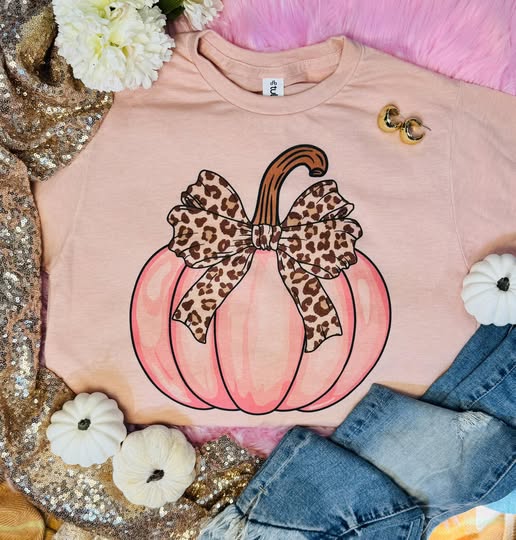 Pink Leopard Pumkin on Peach Tee